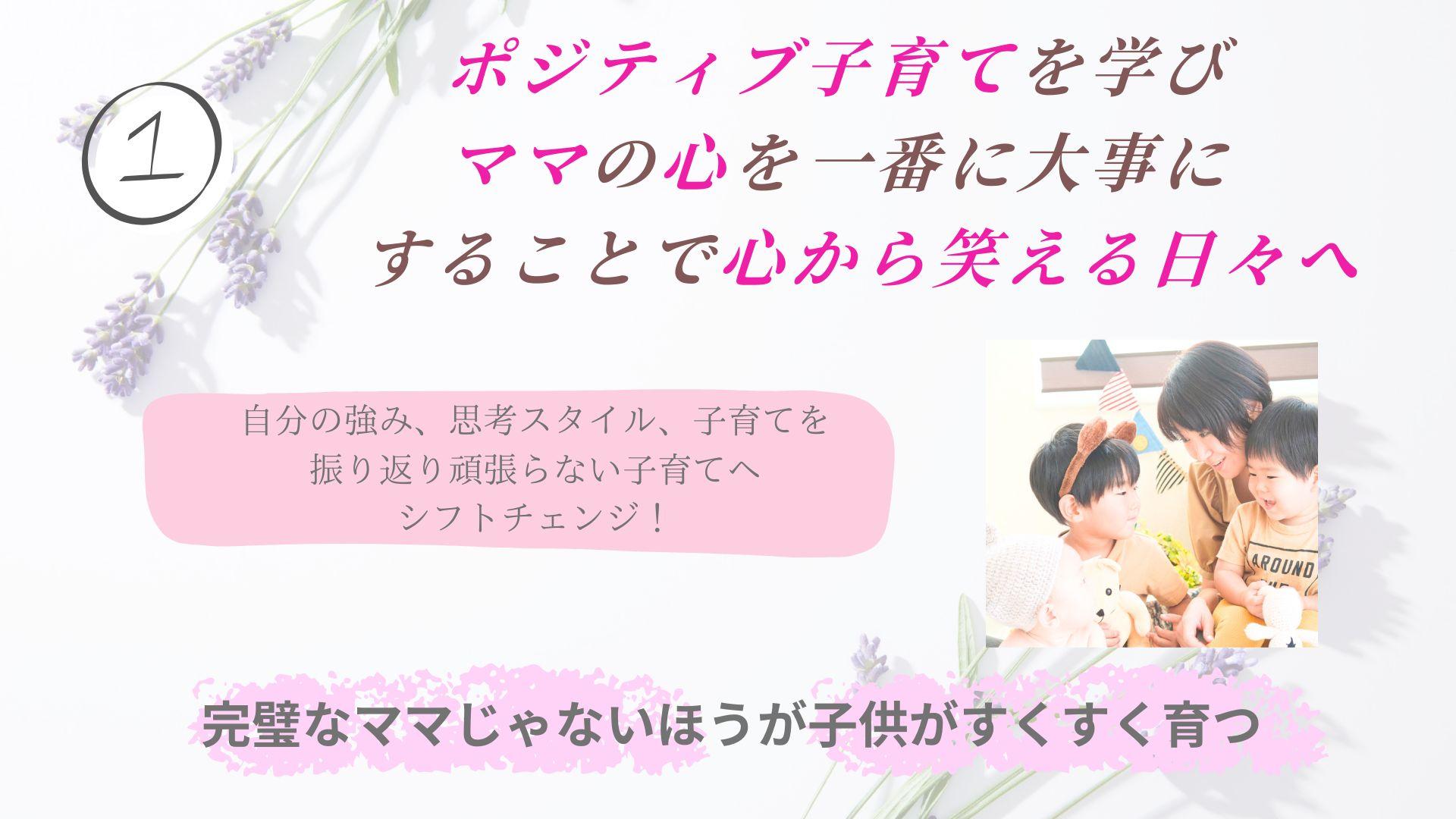※「ポジティブ子育て」とは、ポジティブ心理学をベースに、子育てや日常の中で自己肯定感を高めていく方法です。